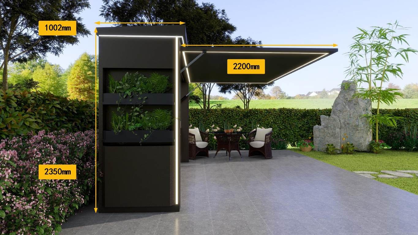 Se abre hacia arriba para proporcionar sombra mientras cocinas y ofrece el máximo nivel de protección contra el sol, la lluvia y el polvo cuando está cerrada.